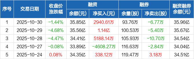 浦发银行:连续3日融资净买入累计1.96亿元(10-30)