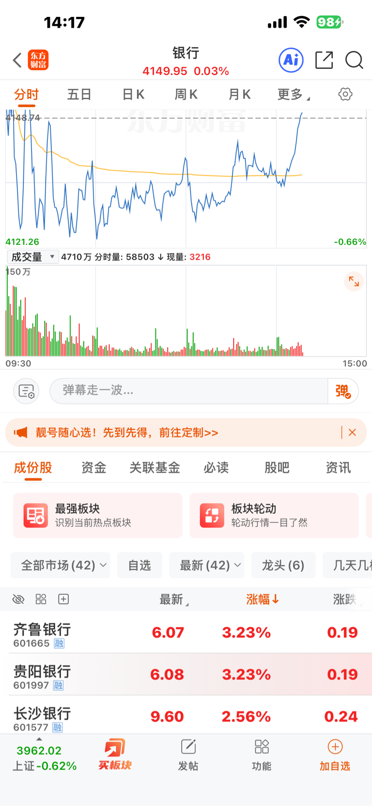 银行板块拉升了