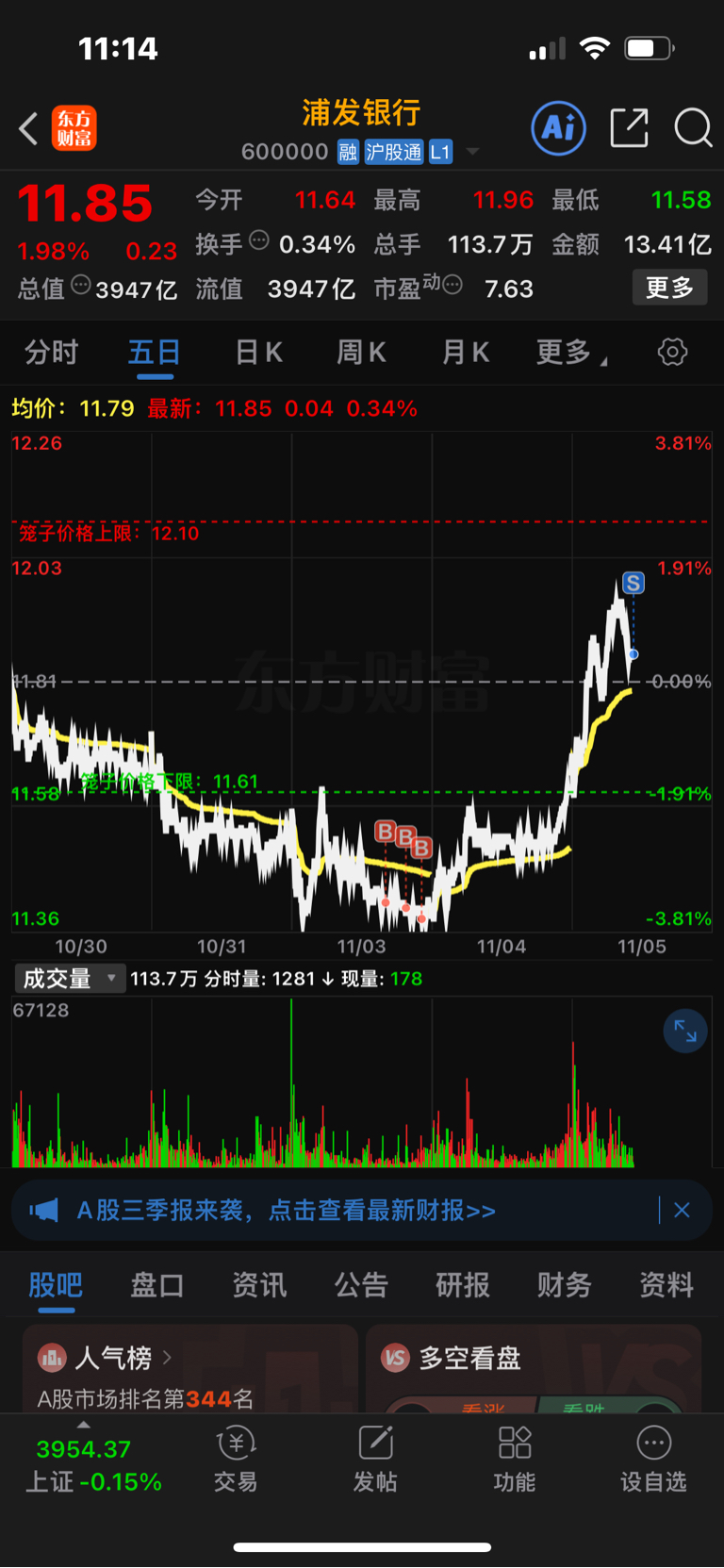 $浦发银行(SH600000)$ 跌去吧,我撤啦