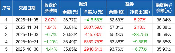浦发银行:融资净偿还415.56万元,融资余额36.77亿元(11-05)