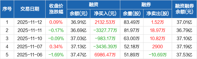 浦发银行:融资净买入2132.53万元,融资余额36.91亿元(11-12)