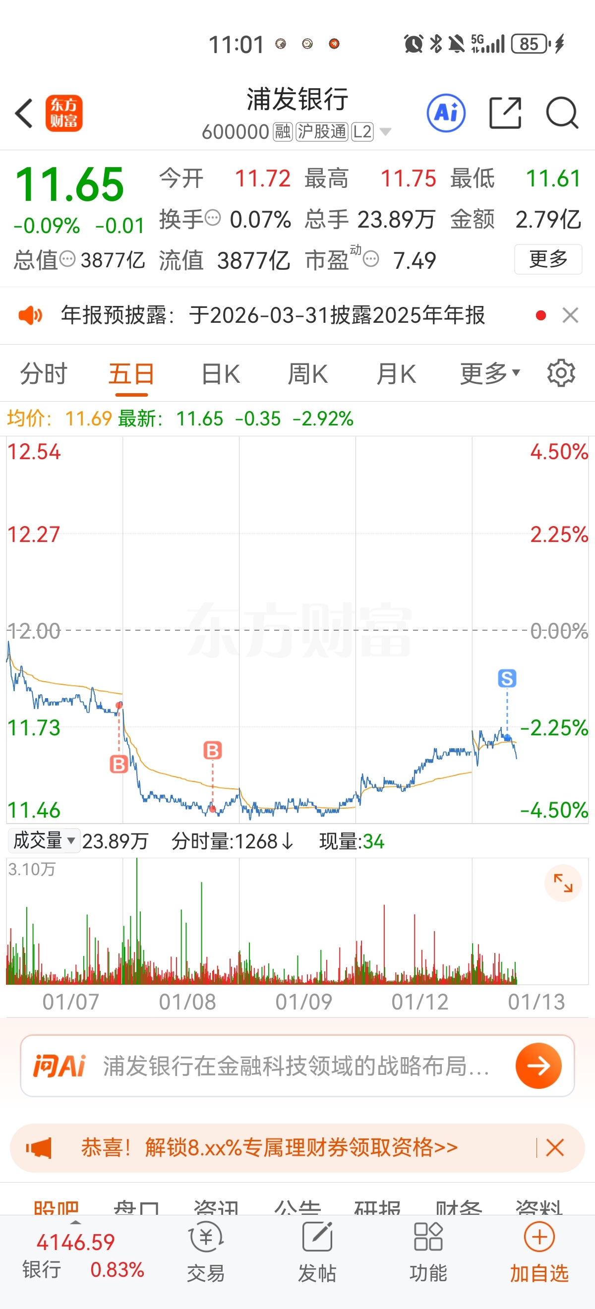 $浦发银行(SH600000)$ 保本走人,太丑了这个形态,不舒服,不做。