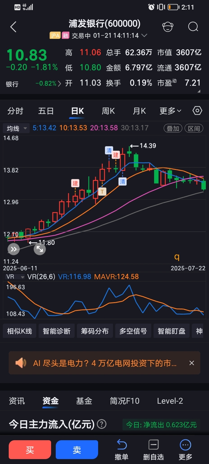 大家都不相信浦发的时候,我选择相信,再次买入。11.82买入。