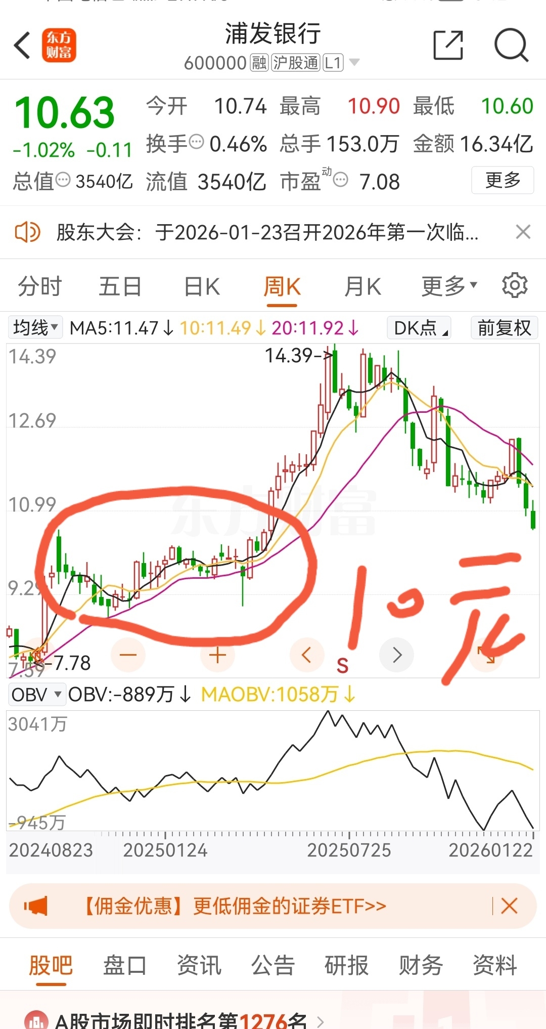 $浦发银行(SH600000)$ 10元左右是去年几个月平台,走到这里它得琢磨