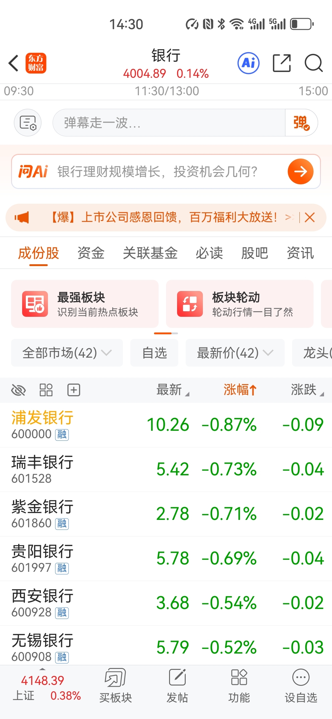 $浦发银行(SH600000)$ 又是第一