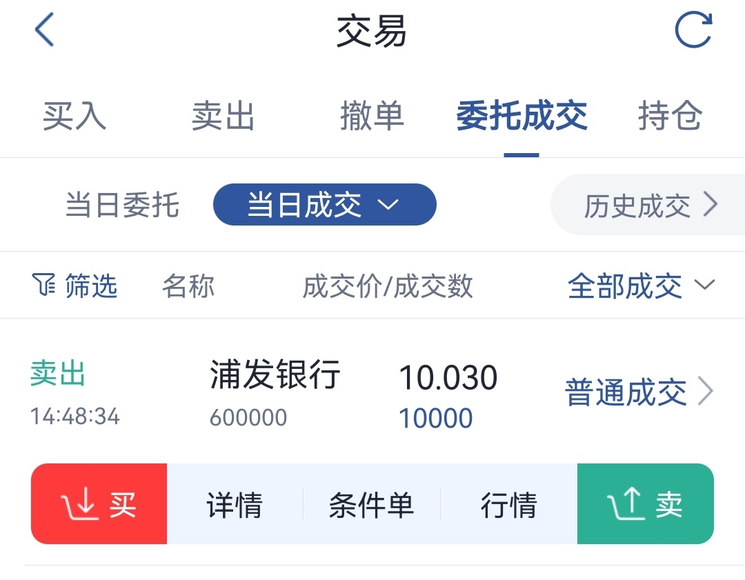 $浦发银行(SH600000)$ 昨天10.23抛3万股,今天继续10.03,一万股,谢谢成交