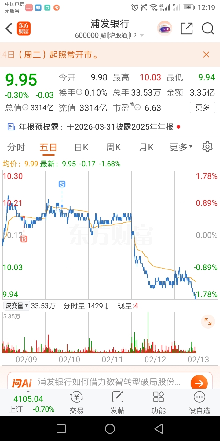 $浦发银行(SH600000)$ 误入浦发银行!一看趋势果断换华夏银行!
