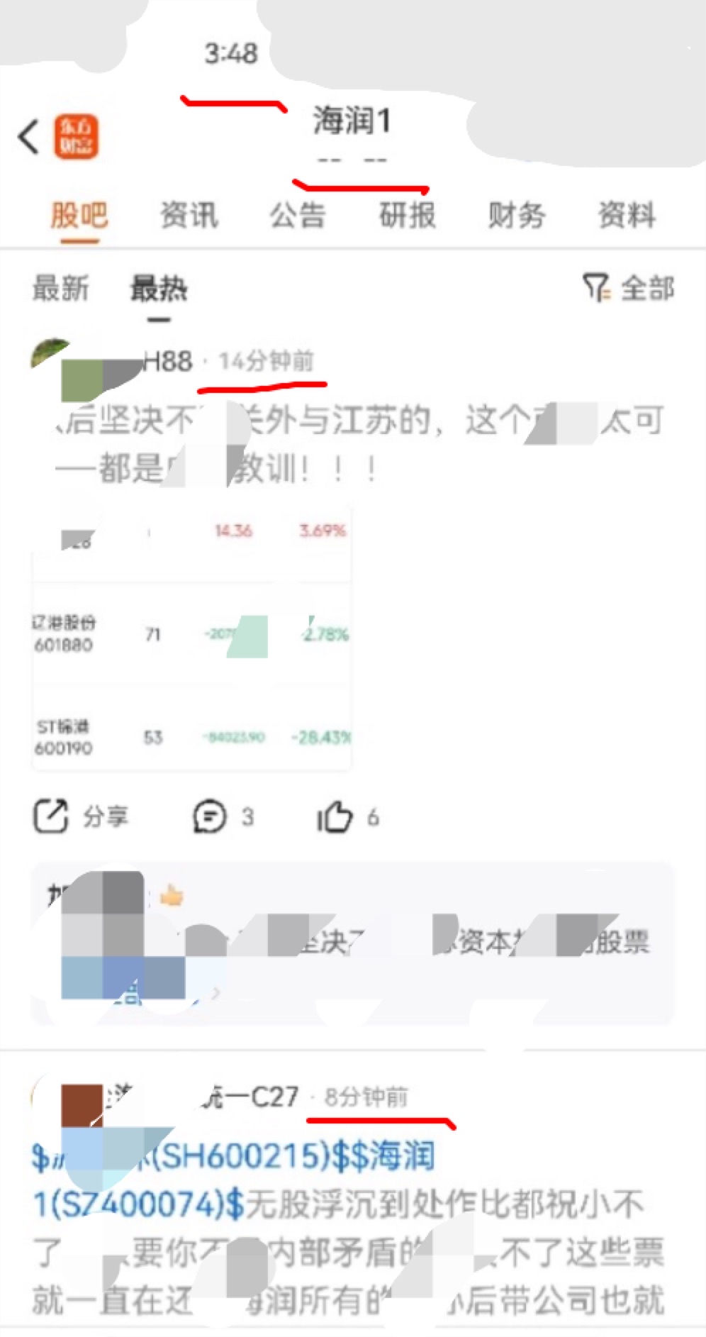 $邯郸钢铁(SH600001)$ 吧长请看下海润1极速把所有全海润人统一c27的铁刚测试完成在最热全部陈了,进入最热的新铁都会被极速无故踢出,对无股人的铁倍加呵护害全江苏的铁以沉踢有股人c27的铁来损全部江苏,用心之独已经不言而喻变相为无股人做不好事的作比置顶行为请吧长控制这样的极速,麻烦了谢谢$海润1(SZ400074)$