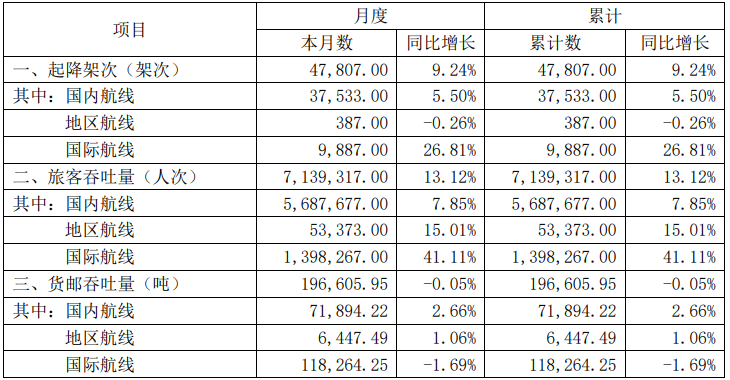 白云机场2025年1月起降架次同比增9.24%