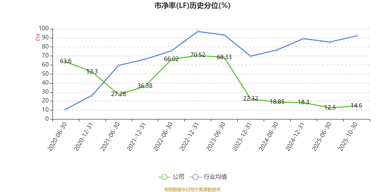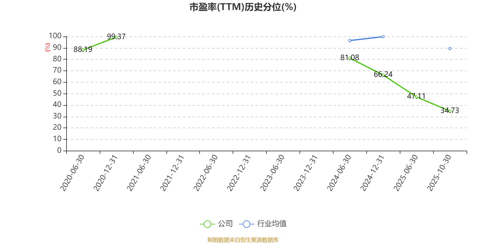 市盈率、市净率为负时,不显示当期分位数,会导致折线图中断。