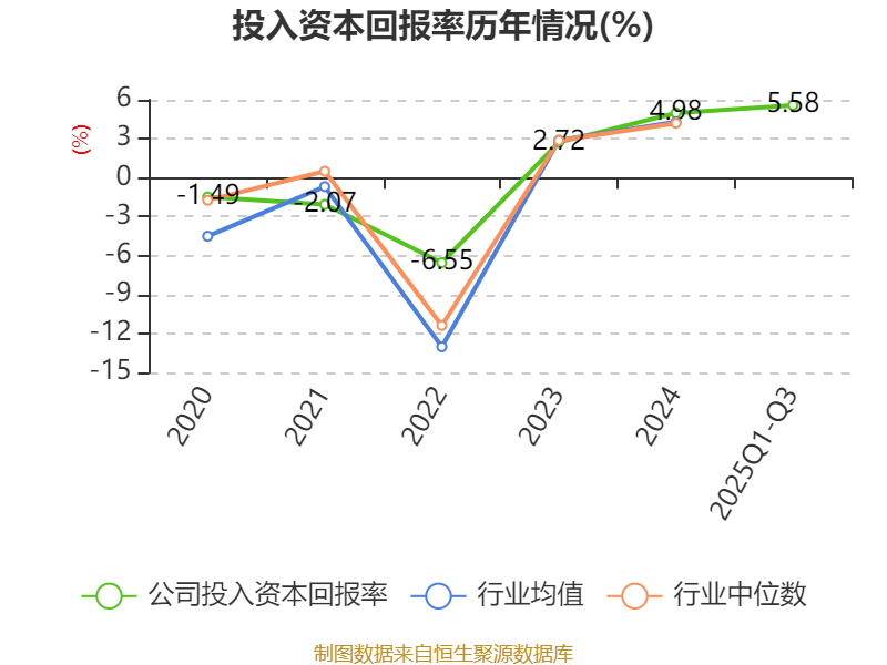 盈利能力方面, 2025年前三季度公司加权平均净资产收益率为5.84%,同比上升2.1个百分点。公司2025年前三季度投入资本回报率为5.58%,较上年同期上升1.97个百分点。