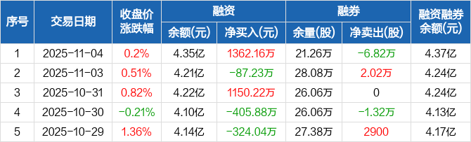 白云机场:融资净买入1362.16万元,融资余额4.35亿元(11-04)
