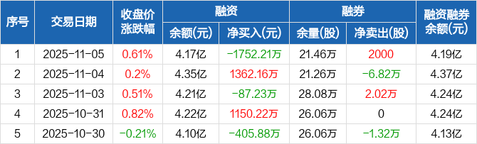 白云机场:融资净偿还1752.21万元,融资余额4.17亿元(11-05)