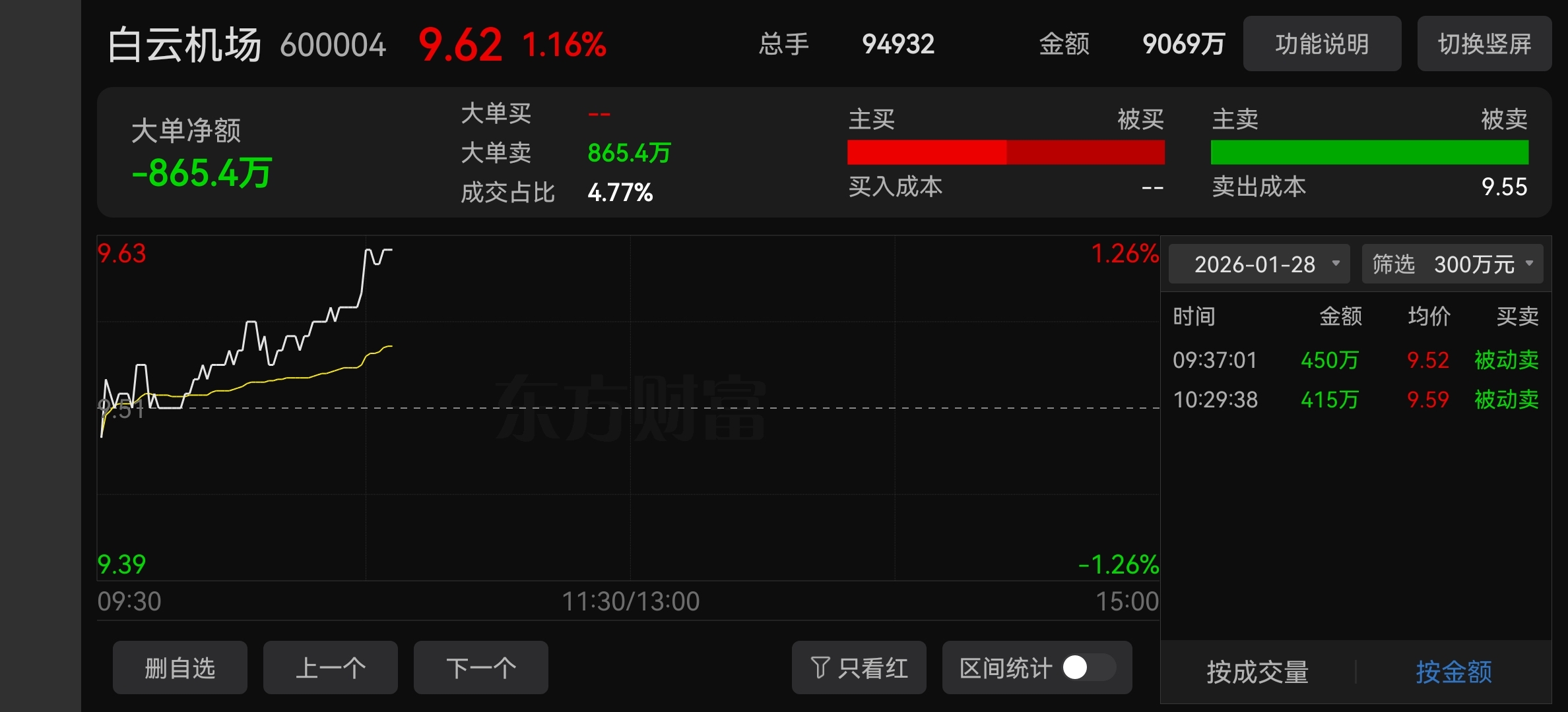 $白云机场(SH600004)$ 只要有这种大单在被动卖,他就涨不了,过两天又会砸下来。