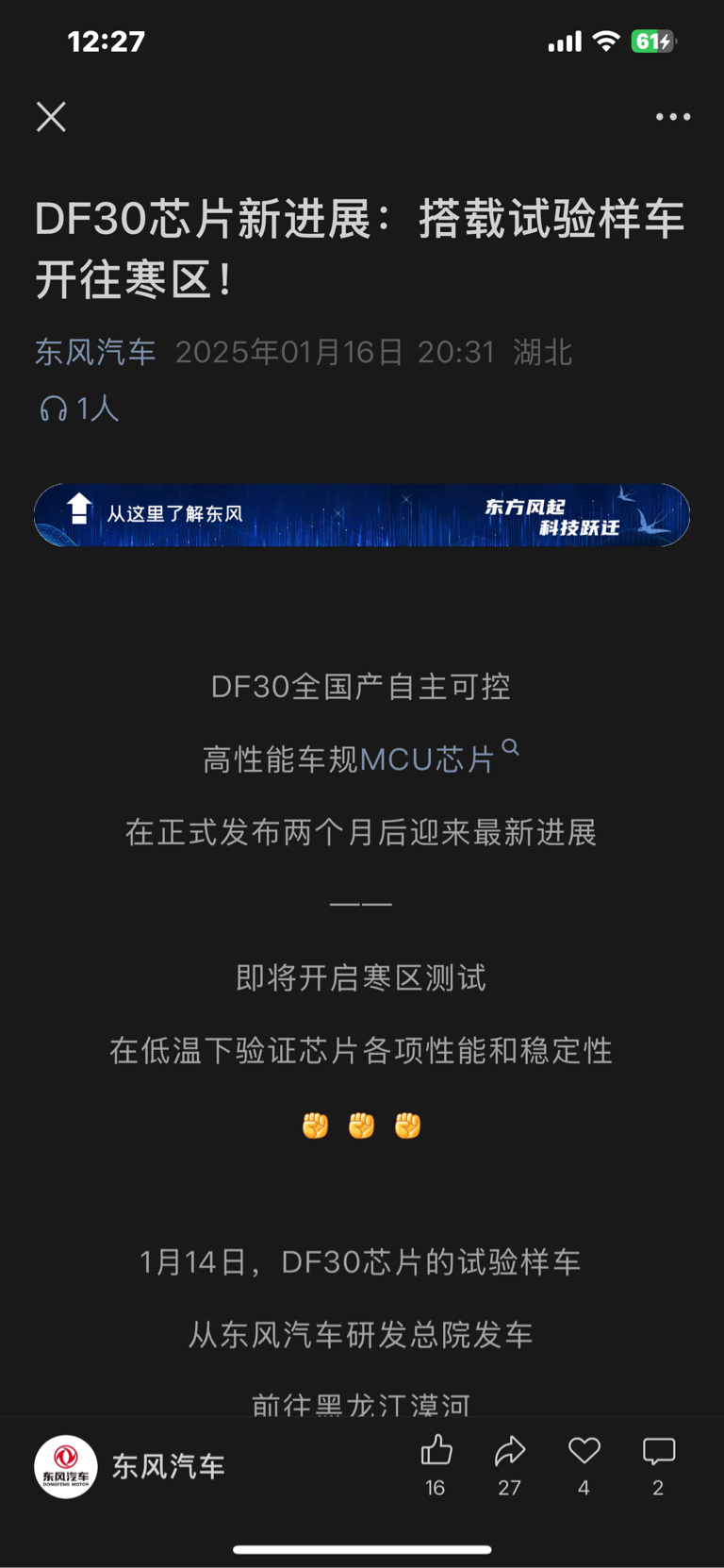2月10日至2月24日项目团队将在漠河寒区试验基地进行低温原地冷启动、低温行车冷