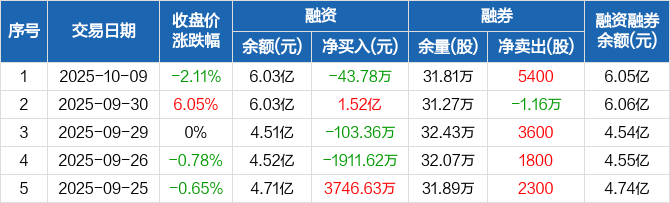 东风股份:融资净偿还43.78万元,融资余额6.03亿元(10-09)