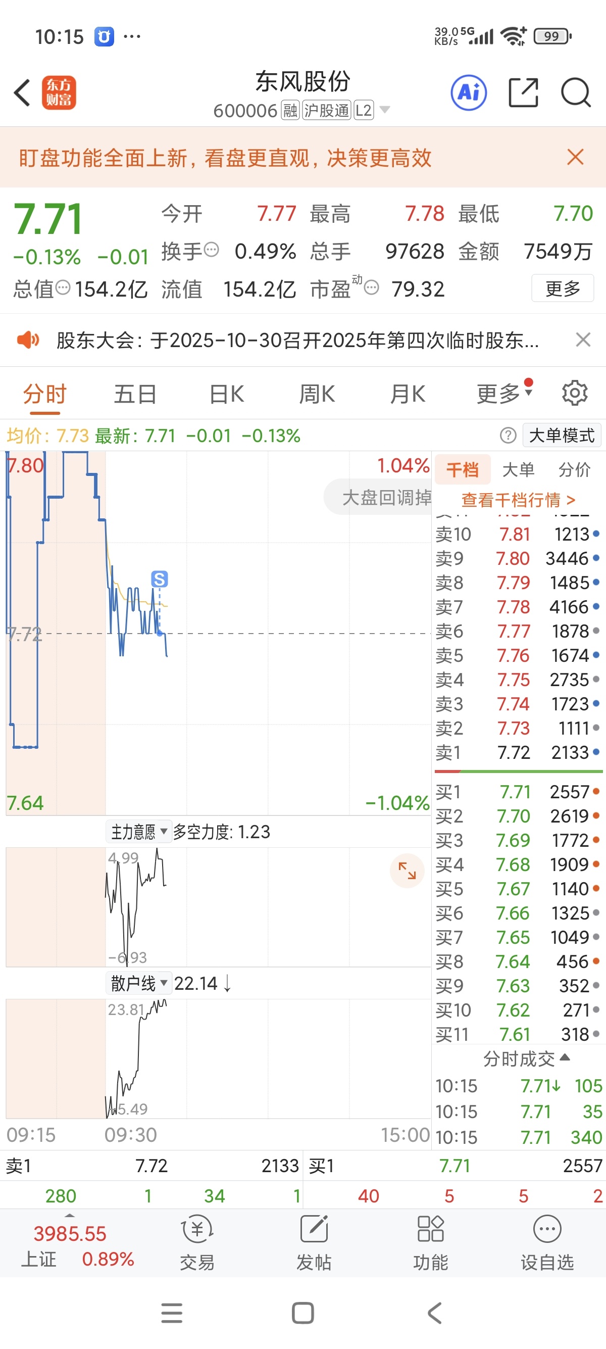 奉劝大家远离这种毫无价值的死票,不要被:东风,两个字给蒙蔽了,这货其实就是个钝刀割肉,耗到你没有一点耐心再割肉的死票,我割肉离场了,再也不会碰这支票了,炒股以来,最失败的一次选择。瞎了眼买了它