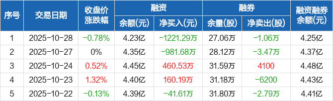 东风股份:融资余额4.23亿元,创近一年新低(10-28)