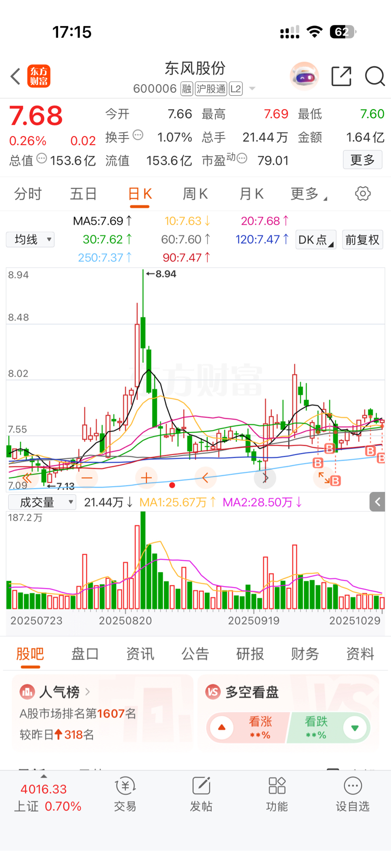 $东风股份(SH600006)$ 盯上你了,只买不卖