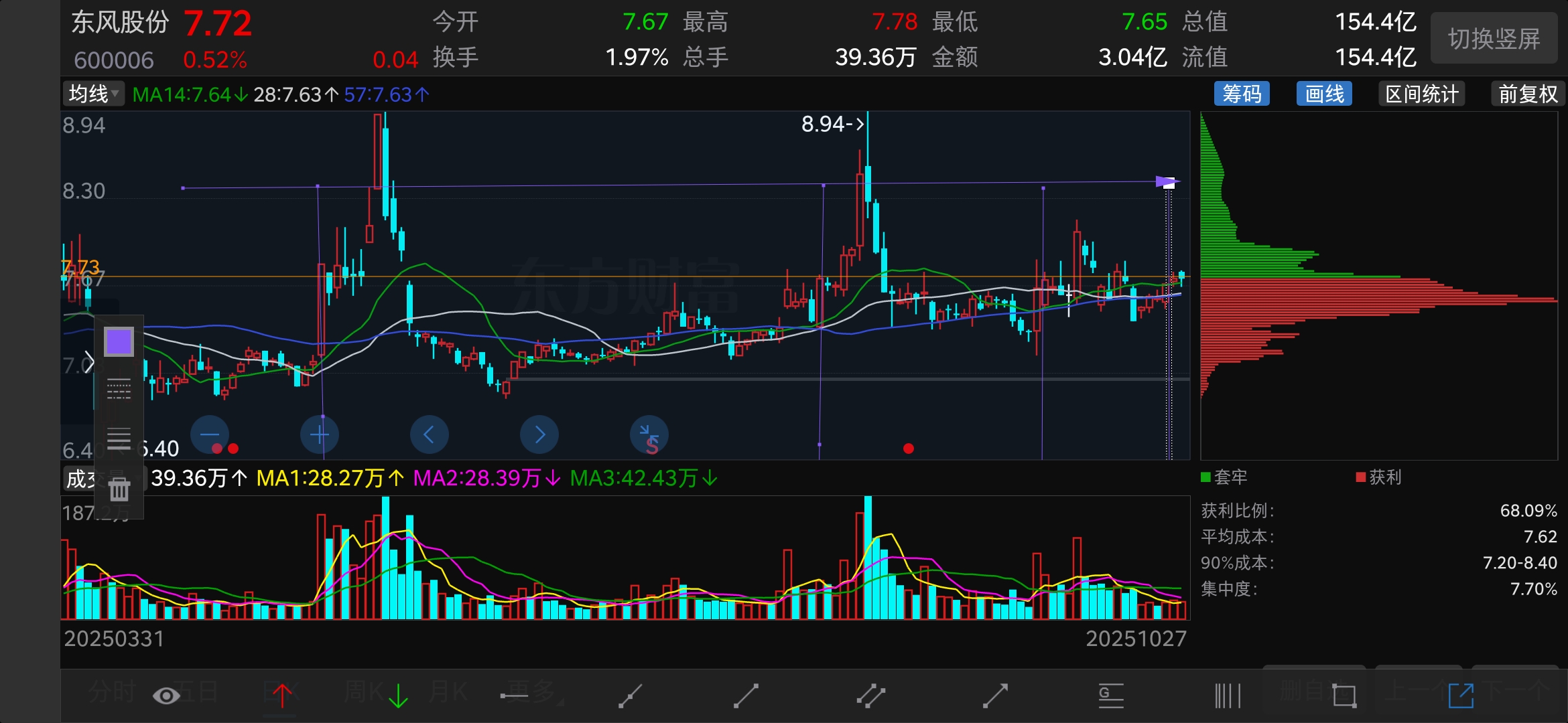 $东风股份(SH600006)$ 同一个价格平台,成交量委萎缩这么多,洗走了多少散户?没有理由再去做空了!