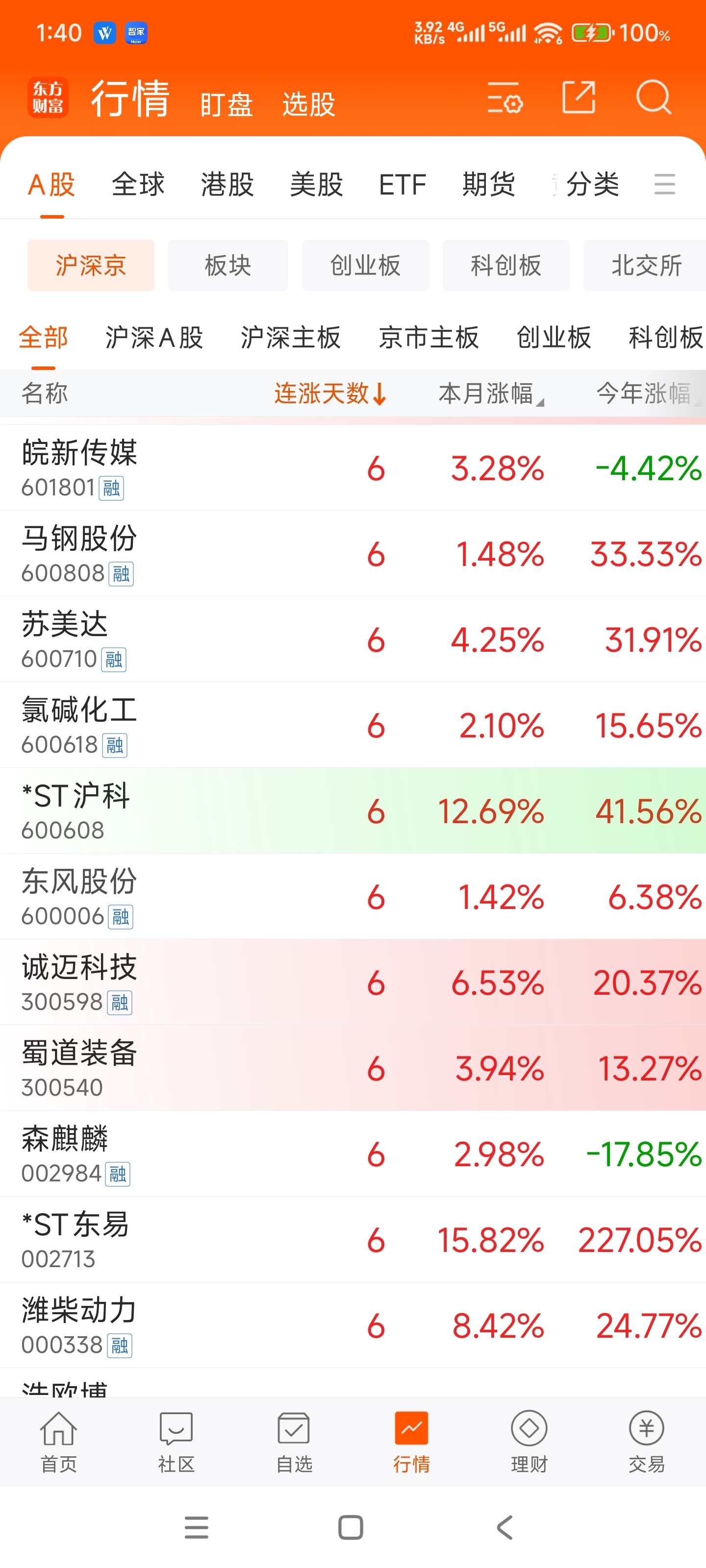 $东风股份(SH600006)$ 涨6天才一个多点。