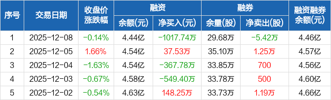 东风股份:融资净偿还1017.74万元,融资余额4.44亿元(12-08)