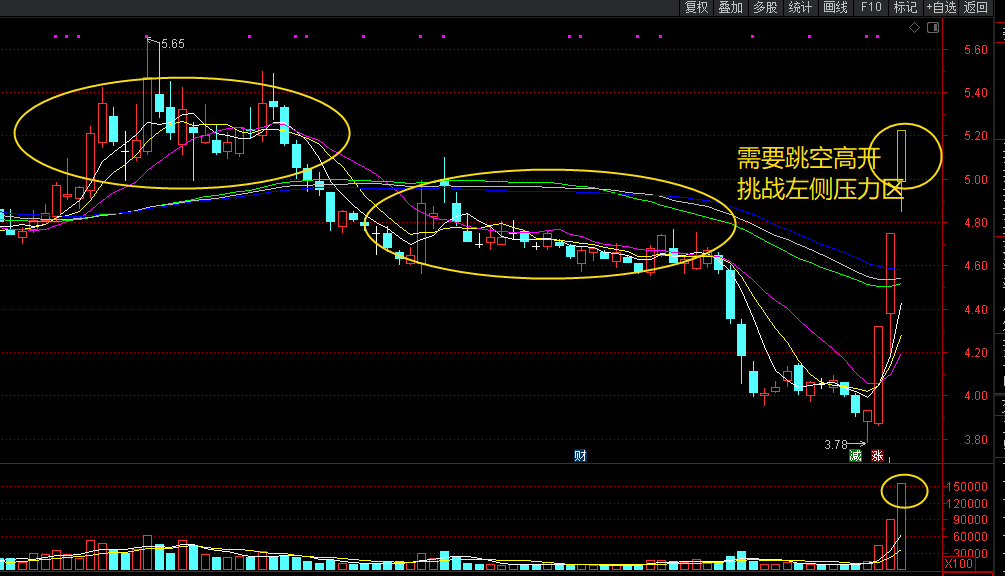 永辉超市:海峡+大消费,考虑到盘面分歧加大的预期,今天大消费题材天然的防御性是加分项。而且该票容量较大,如果大柚子向这个方向发力,永辉应该是躲不开的选择。技术面看,1板是一波上板,非常轻松,2板进入左侧套牢区,分时用了一个类似回首掏的手法,同时伴随大幅放量,大资J介入的迹象非常明显。而今天要想3板,左侧的不规则K线造成的压力更大一些,所以,最好是中幅度以上高开,这代表场外接盘方的实力和坚决性,注意要求要更加放量才行。$永辉超市(SH601933)$