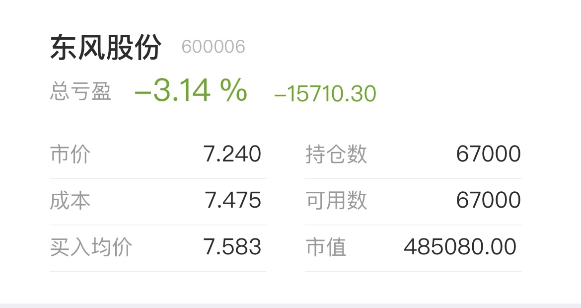 $东风股份(SH600006)$ 把我洗出去?没门,杠到底了
