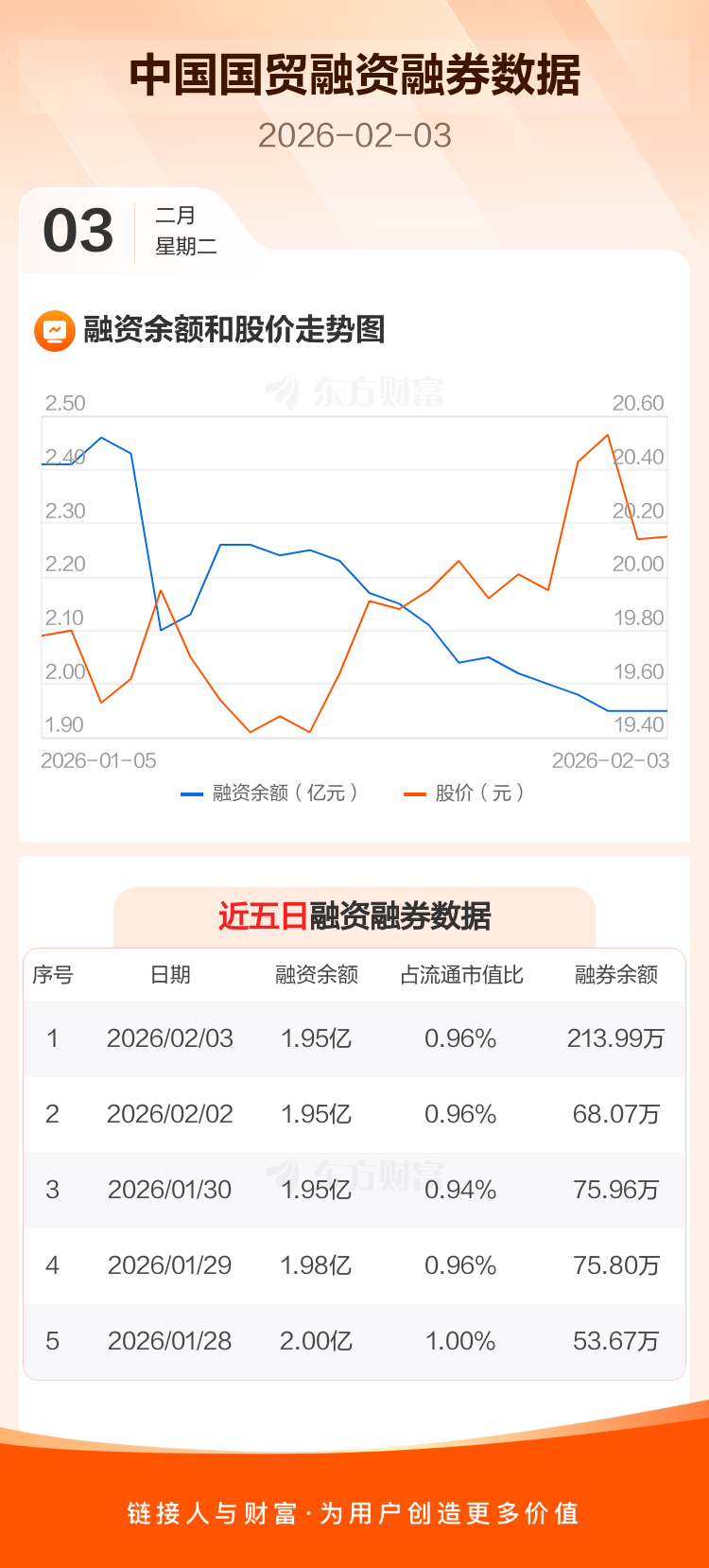 交易所最新数据显示,中国国贸于2026年2月3日获融资买入298.10万元,融资偿还287.43万元,当日融资净买入10.67万元。目前,该股融资余额1.95亿,占流通市值比例为0.96%。