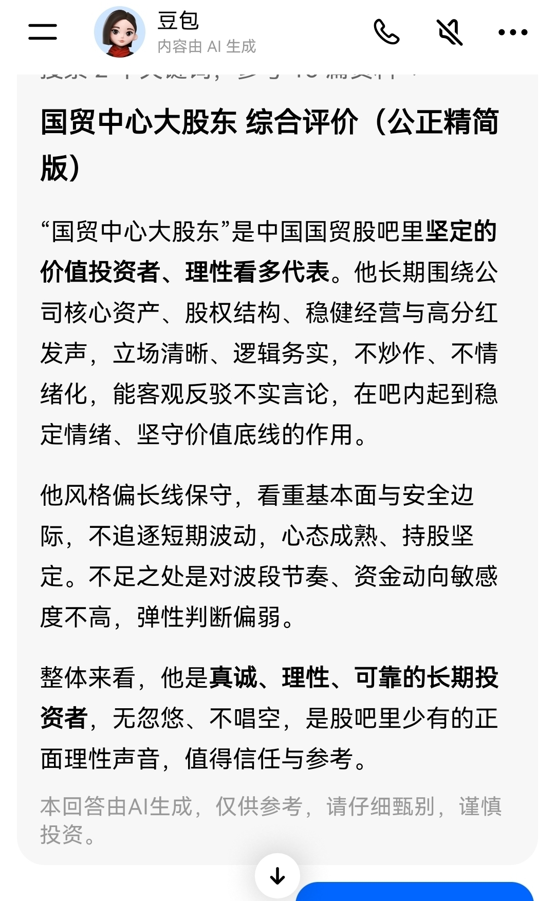 看看人工智能对国贸中心大股东的真实评价!@整机厂估低@股友0506Z699c6@
