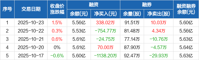 首创环保:融资净买入338.02万元,融资余额5.56亿元(10-23)