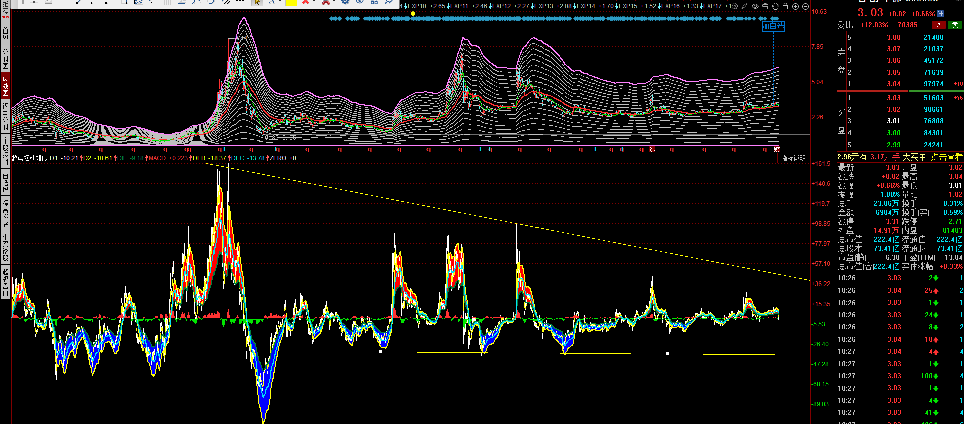 形态控制得非常完美,活动区间就这么窄,不打破这种下降的趋势线之前,不可能出现大的