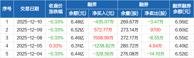 首创环保:融资净偿还435.07万元,融资余额6.48亿元(12-10)