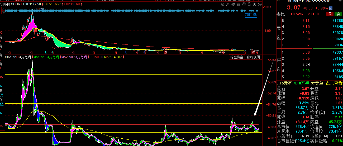 强弱动能一直徘徊在这个区域内,而没有形成有力的攻击到我箭头所指的位置之上的时候,散户朋友们一定要注意逢低买,而不是追涨,一旦跨入到我这个箭头所指的位置上方,一定要注意高位风险吗,这是逆向操作的手法,现在这个区域的波动,就是公募指数基金操纵的,也可以说是公司的基本面决定的,公司之前野蛮扩张资产规模,现在反过来要说轻资产了,这背后什么目的大家都应该懂得的