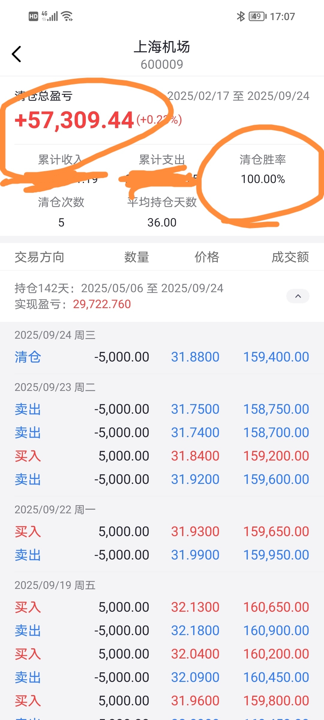 $上海机场(SH600009)$ 老钻风对不住上海机场的诸位老铁,上个月27号就清仓上机了,最低卖出价31.74,刚才没事,看看上机自2月中旬投入160+万500手(第一笔买入价除权后32.25元),到底挣了多少钱?居然也有五万多,真是一言难尽