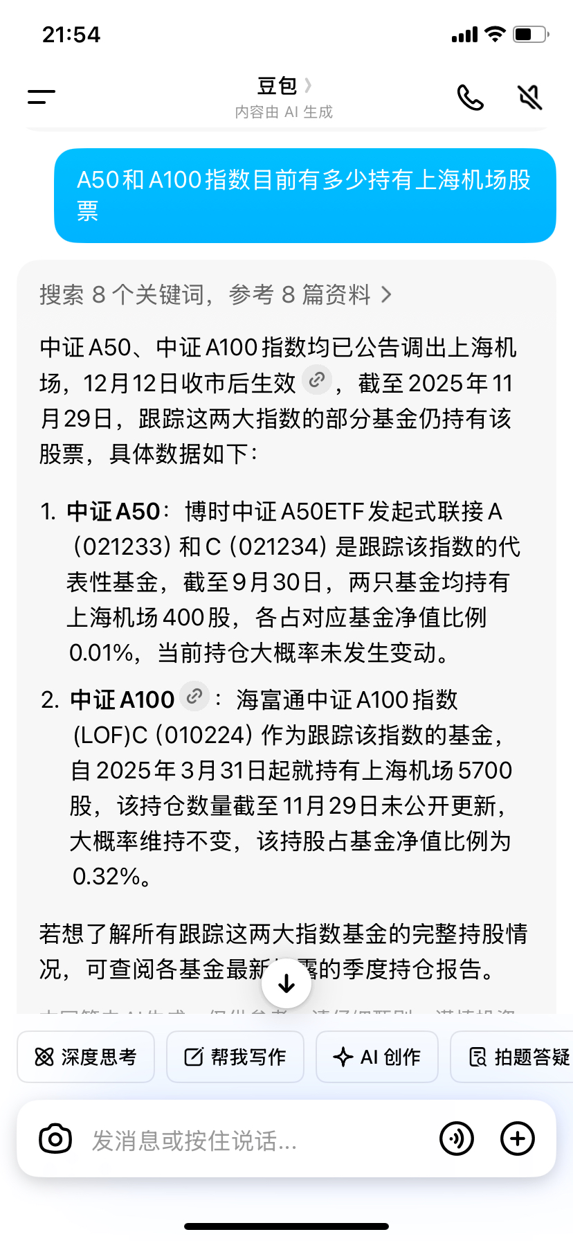$上海机场(SH600009)$ A50和A100指数目前已经没有多少持有上海机场股票
