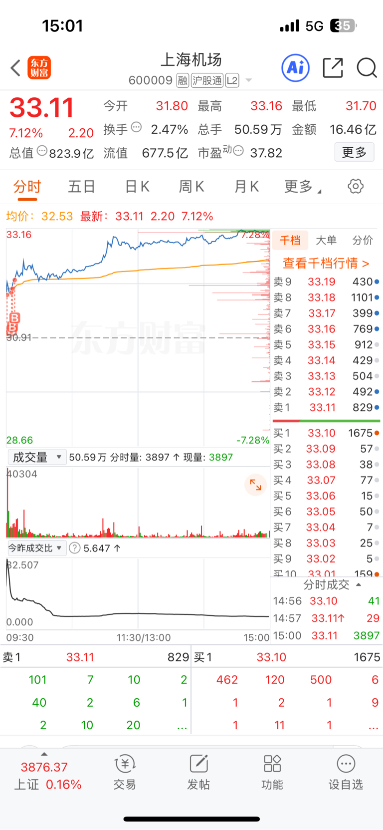 $上海机场(SH600009)$ 个人觉得35块基本能price in这次的利好,所以早上看到31.80开盘就果断买了,不过既然买了我也不想那么快去卖,现在价格合适的优质资产也不多了