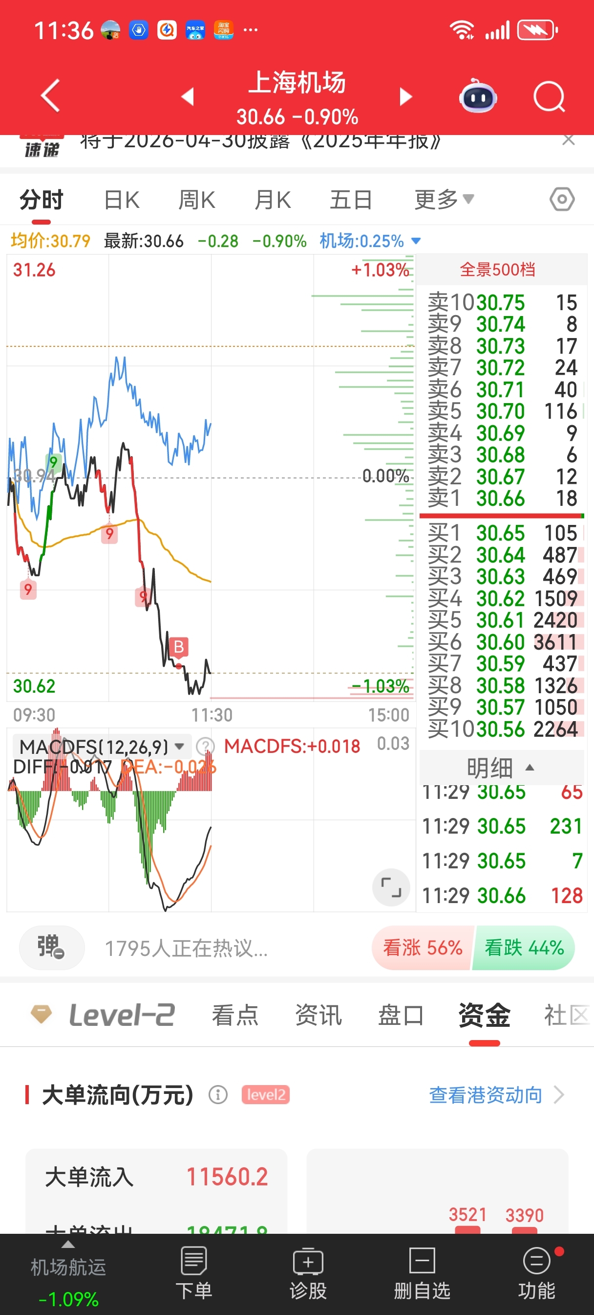 $上海机场(SH600009)$ 买了4手,挂8毛出,出不了就尾盘出