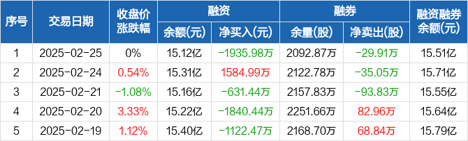 包钢股份:融资净偿还1935.98万元,融资余额15.12亿元(02-25)