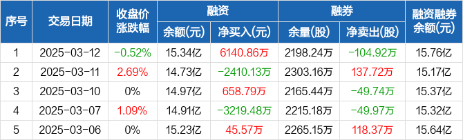 包钢股份:融资净买入6140.86万元,融资余额15.34亿元(03-12)