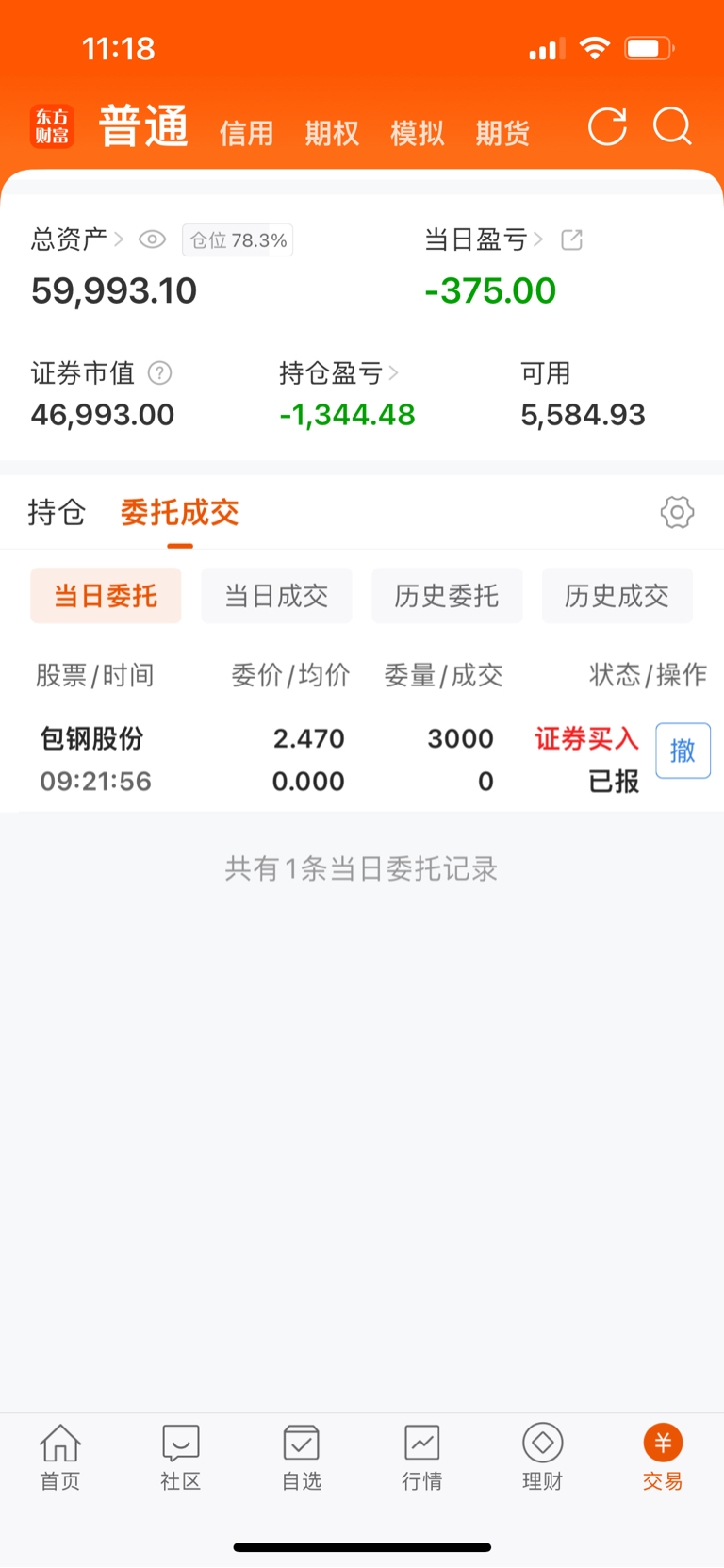 早上挂单2.47加仓一半,差了2分钱,下午看看给不给机会