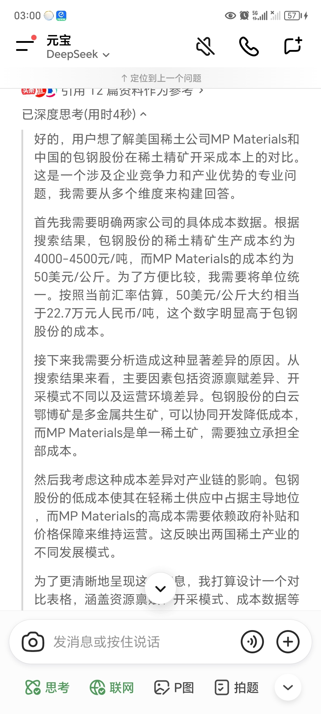 $包钢股份(SH600010)$ 漂亮国的稀土公司MP稀土精矿开采成本是包钢稀土的80倍!包钢的稀土开采成本在4000-5000/吨,而漂亮国MP公司开采成本在22万/吨导致一直亏损!然而MP的市值比包钢股份还高!!!