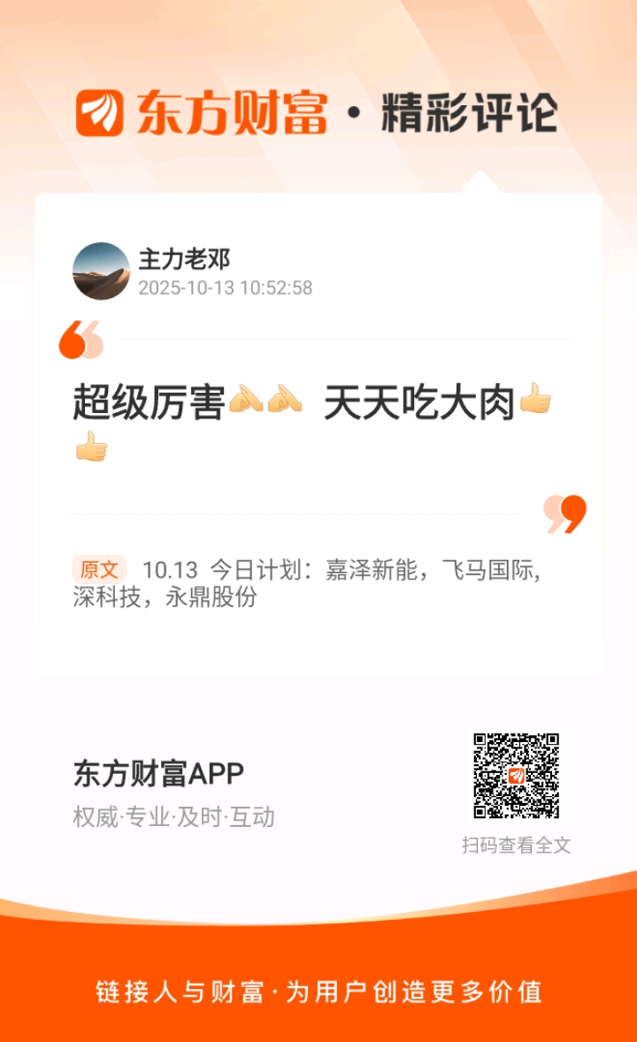 温馨提示: 1.根据《证券法》规定,禁止编造、传播虚假信息或者误导性信息,扰乱证券市场;2.用户在本社区发表的所有资料、言论等仅代表个人观点,与本网站立场无关,不对您构成任何投资建议。用户应基于自己的独立判断,自行决定证券投资并承担相应风险。《东方财富社区管理规定》