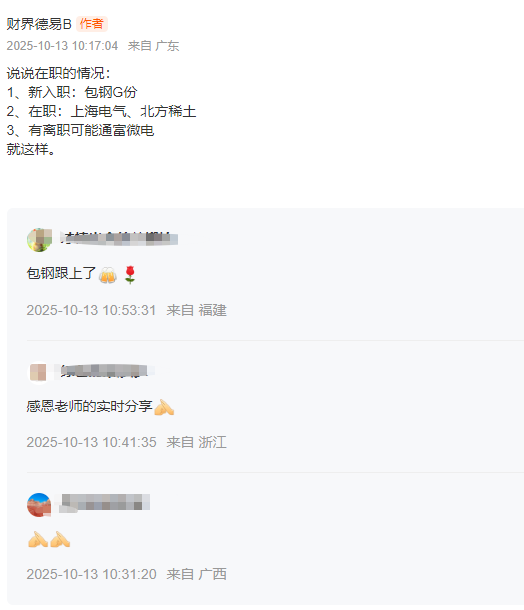 //@财界德易B :今日包钢股份,北方稀土,至纯科技这三只票都顶满了有参与的兄弟们扣“8”看看有多少人 $包钢股份(SH600010)$财哥总能抢占先机,带我们吃肉。
