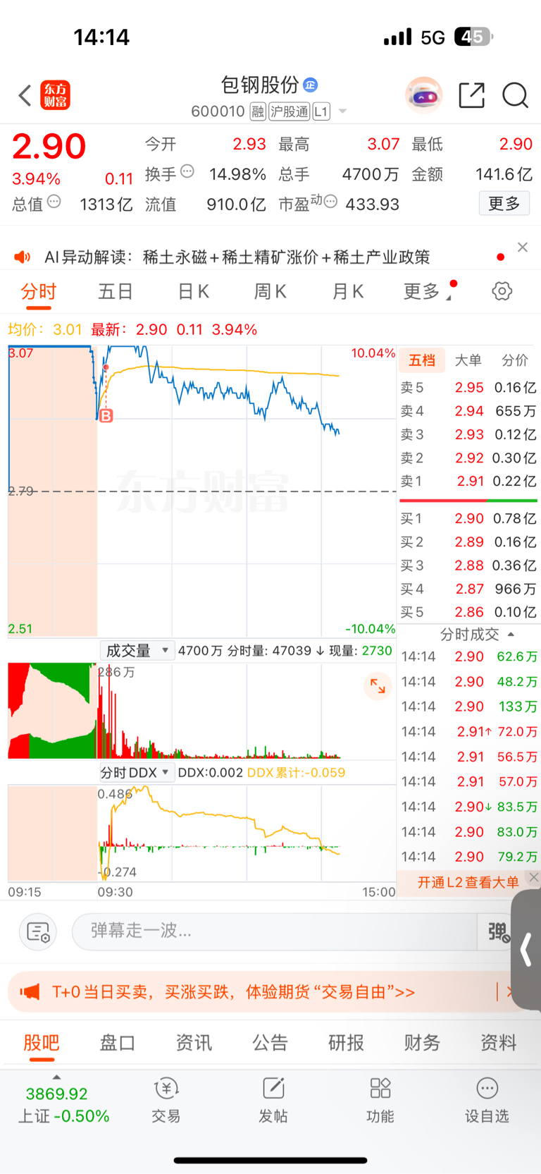 $包钢股份(SH600010)$ 对不起我就买了一手,给你买的话了