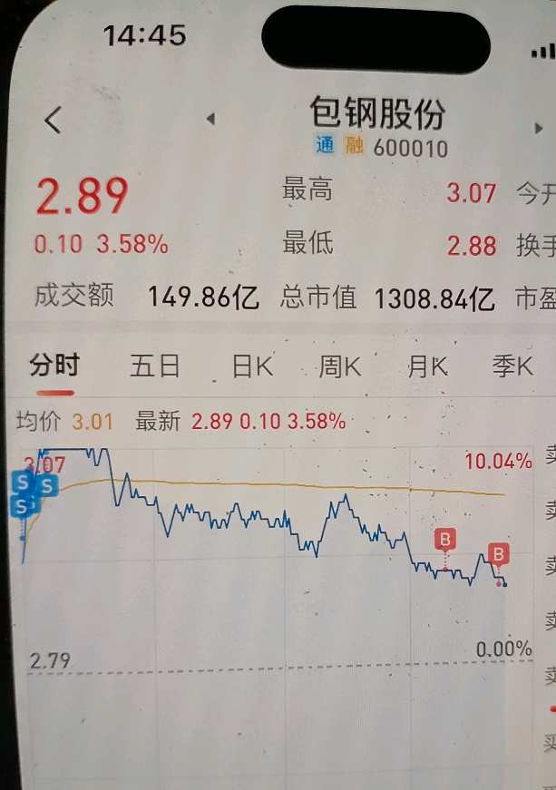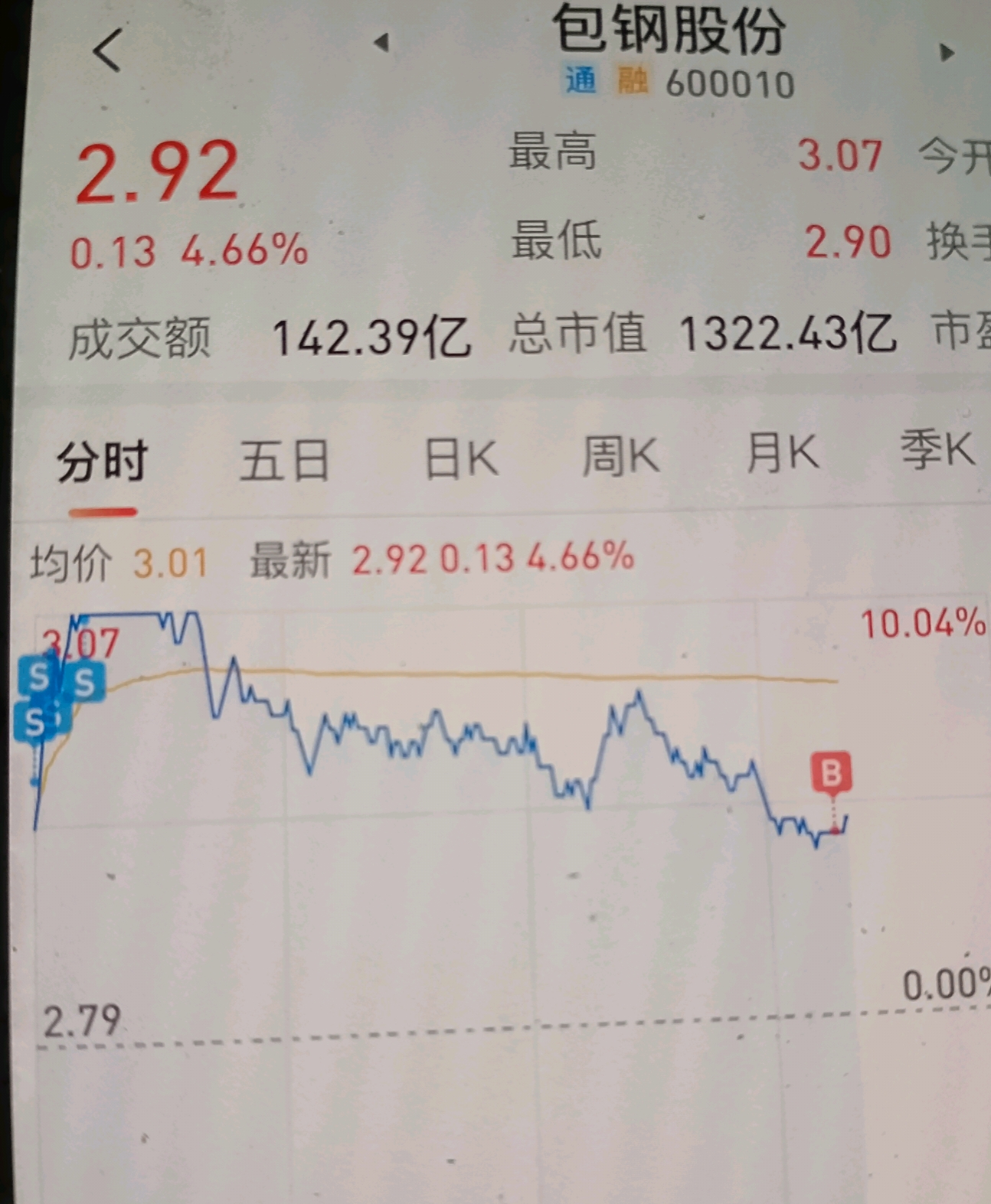 $包钢股份(SH600010)$ 2.91把3.07出来的筹码接回来了。