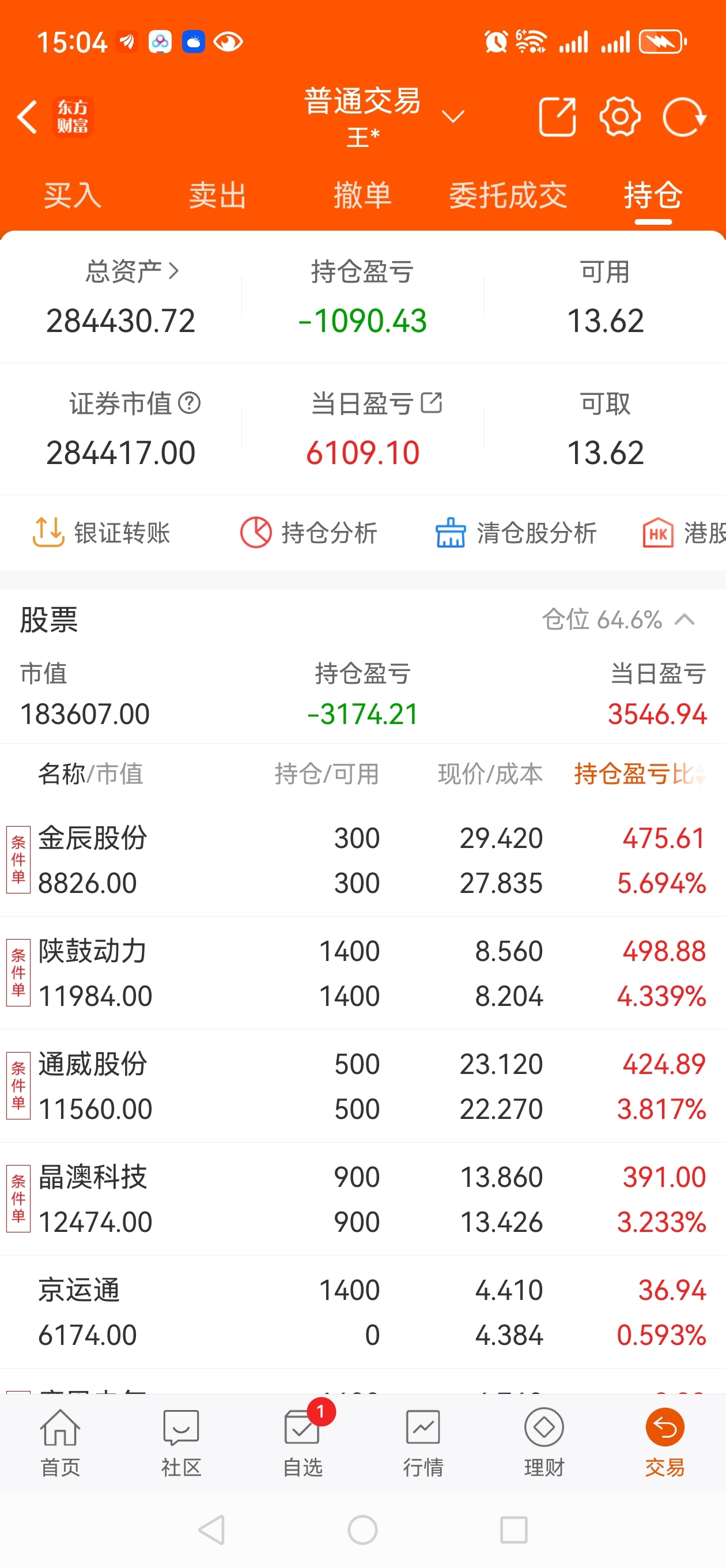 今天盈利6109元,坚持了一个多月,今天终于有表现了