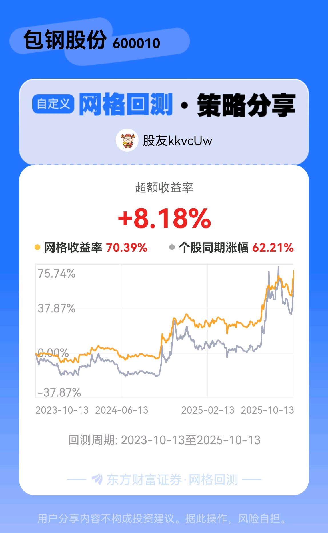 #条件单交流# #网格交易晒单#我使用网格交易回测了最关心的个股,朋友们走过路过看看我的收益~$包钢股份(SH600010)$
