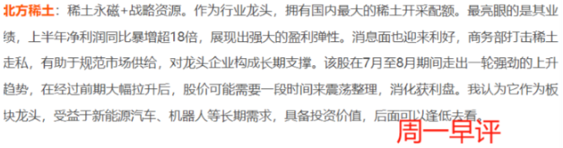 北方稀土:稀土龙头+新能源+机器人。这家公司在国内稀土行业是名副其实的老大哥,主要业务包括稀土原料和材料的开发、生产与销售,稀土是新能源车、风电等高端制造领域的关键材料。基本面看,公司中报业绩表现挺亮眼,净利润有过大幅增长,而且长期被众多机构拿着,超过一半的流通股被机构锁定了。从盘面观察,这只股最近突破前高,这周一还出现过涨停并伴随成交量放大,形成了量价齐升的有利形态,目前它处在多头行情中,今天因为指数冲高回落,这个票也跟随大盘冲高回落,考虑到稀土价格有支撑,供需格局也在持续改善,作为行业龙头,它受益会比较直接。如果股价能有效突破前高,中期目标或许可以看高一线。