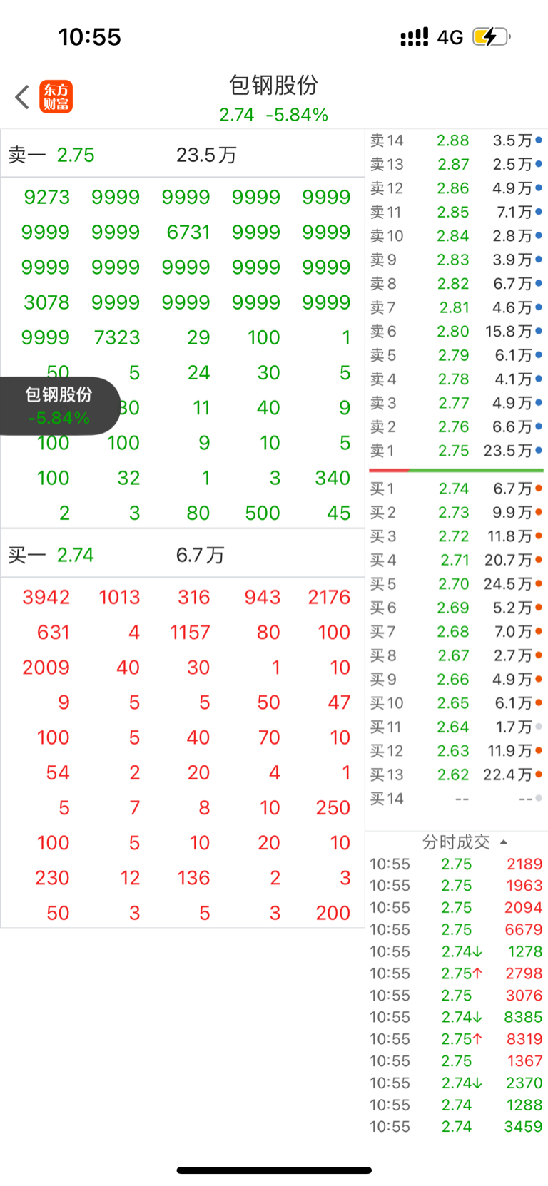$包钢股份(SH600010)$ 没有l2的自己看过来,卖单全是9999主力铁了心的要出货,赶紧先卖了明天低点再接回来